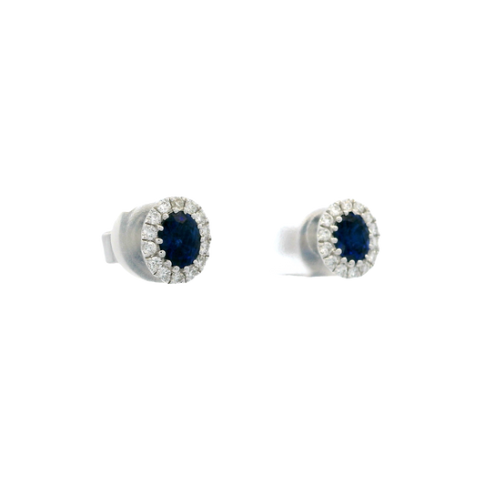 0.59ct Oval Sapphire And Diamond Cluster Earrings