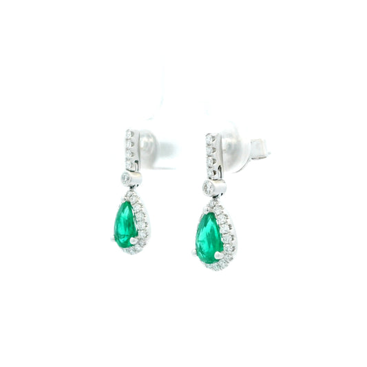 1.13ct Pear Cut Emerald And Diamond Cluster Drop Earrings