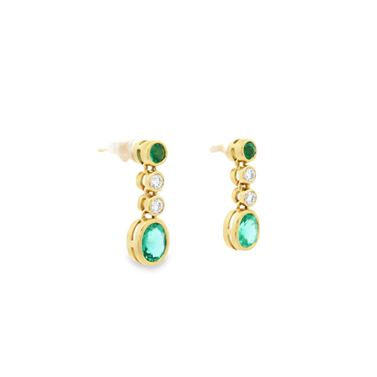 1.10ct Oval And Round Emerald With Round Diamonds Drop Earrings