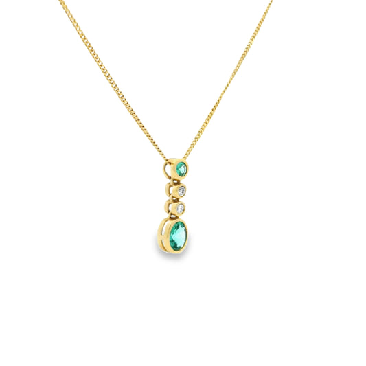 0.60ct Oval And Round Emerald With Round Diamonds Pendant