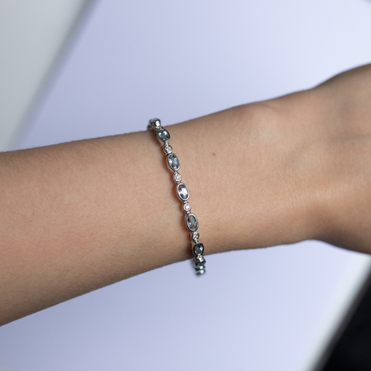 4.24ct Oval Aquamarine And Round Diamond Bracelet