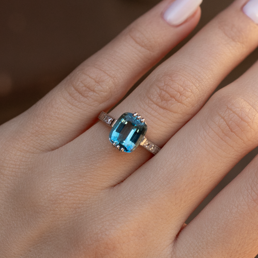 Vintage Emerald Cut Aquamarine Solitaire Ring