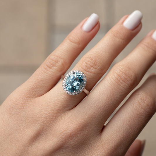 4.15ct Oval Aquamarine And Round Diamond Cluster Ring