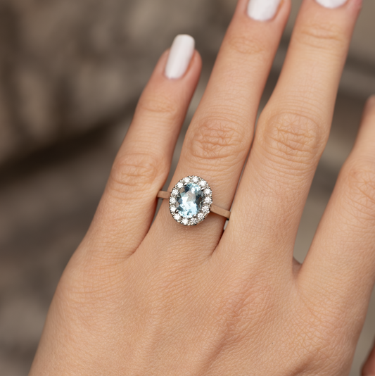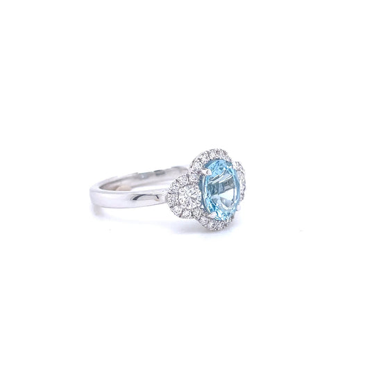 1.28ct Oval Aquamarine And Round Diamond Cluster Ring