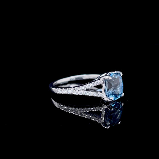 1.63ct Cushion Aquamarine Solitaire Ring With Diamond Set Split Shoulders