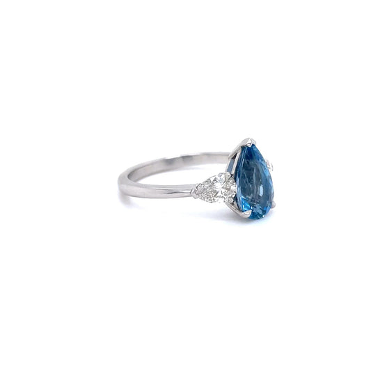 1.68ct Oval Aquamarine and Pear Cut Diamond Three Stone Ring