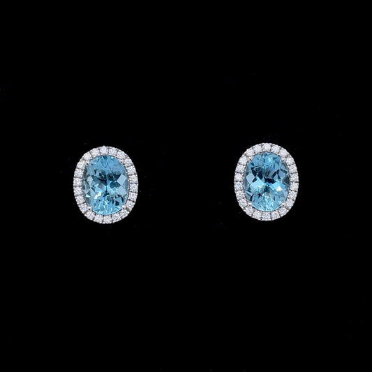 3.38ct Oval Aquamarine and Diamond Cluster Earrings