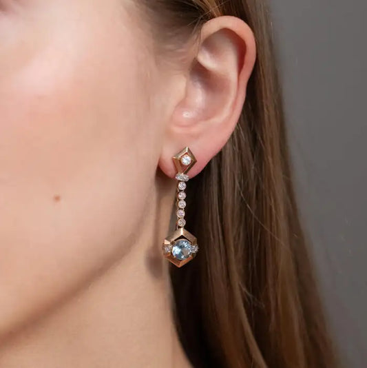 2.25ct Round Aquamarine And Diamond Drop Earrings