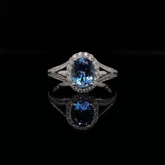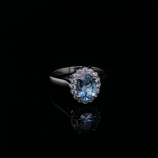1.41ct Oval Aquamarine And Diamond Cluster Ring
