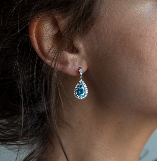 3.48ct Pear Cut Aquamarine and Diamond Cluster Drop Earrings