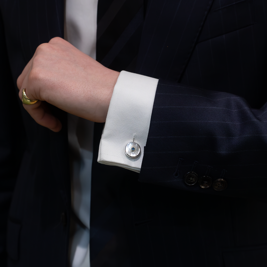 Aquamarine And Mother Of Pearl Round Cufflinks
