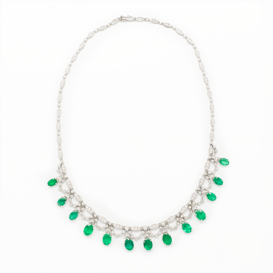 16.20ct Oval Emerald And Diamond Swags Necklace
