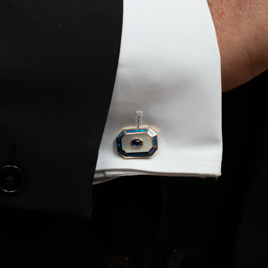 Sapphire, Mother Of Pearl And Opal Cufflinks