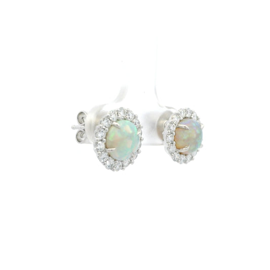 1.77ct Round Opal And Diamond Cluster Earrings