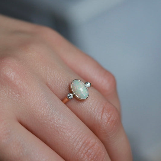 Oval Opal And Round Diamond Three Stone Ring