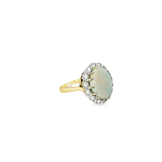 2.20ct Oval Opal And Round Diamond Cluster Ring