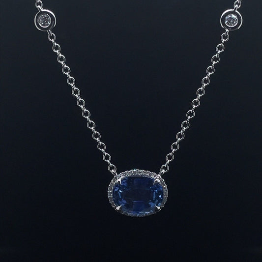 2.18ct Oval Sapphire And Diamond Cluster Pendant