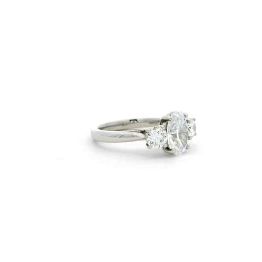 1.70ct Certified Oval Diamond And Round Diamond Three Stone Ring