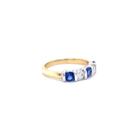 Round Sapphire and Diamond Seven Stone Bar Set Ring