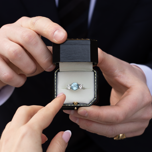 3.10ct Round Teal Sapphire And Diamond Three Stone Ring