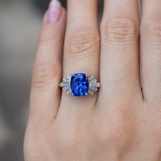 6.08ct Cushion Cut Sapphire Cluster Dress Ring