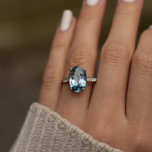 5.73ct Oval Light Blue Sapphire Solitaire Ring
