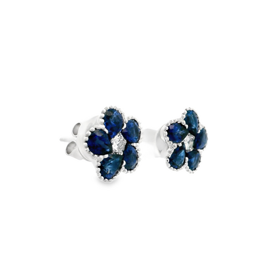 1.40ct Marquise Sapphire and Diamond Star Flower Earrings