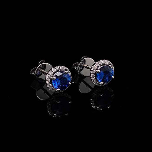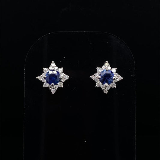 1.15ct Round Sapphire and Diamond Cluster Earrings