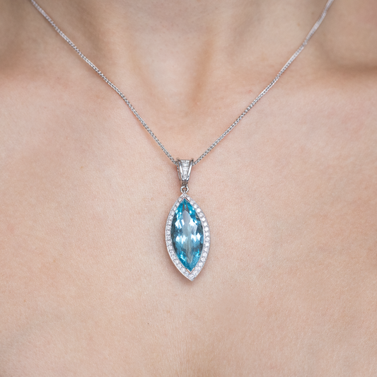6.99ct Marquise Cut Aquamarine and Round Diamond Cluster Pendant