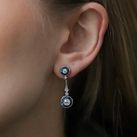 Sapphire and Diamond Bubble Style Cluster Earrings
