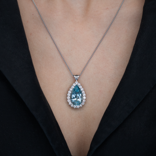 Pear Cut Aquamarine and Diamond Cluster Pendant