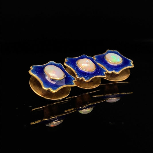 Yellow Gold, Blue Enamel and Opal Dress Studs