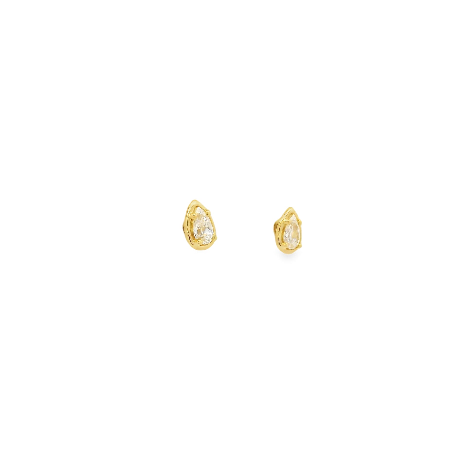 A pair of 18ct yellow gold claw set pear cut diamond with a gold edge solitaire stud earrings.