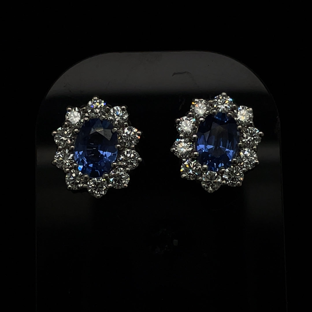 1.82ct Oval Sapphire And Round Diamond Cluster Earrings