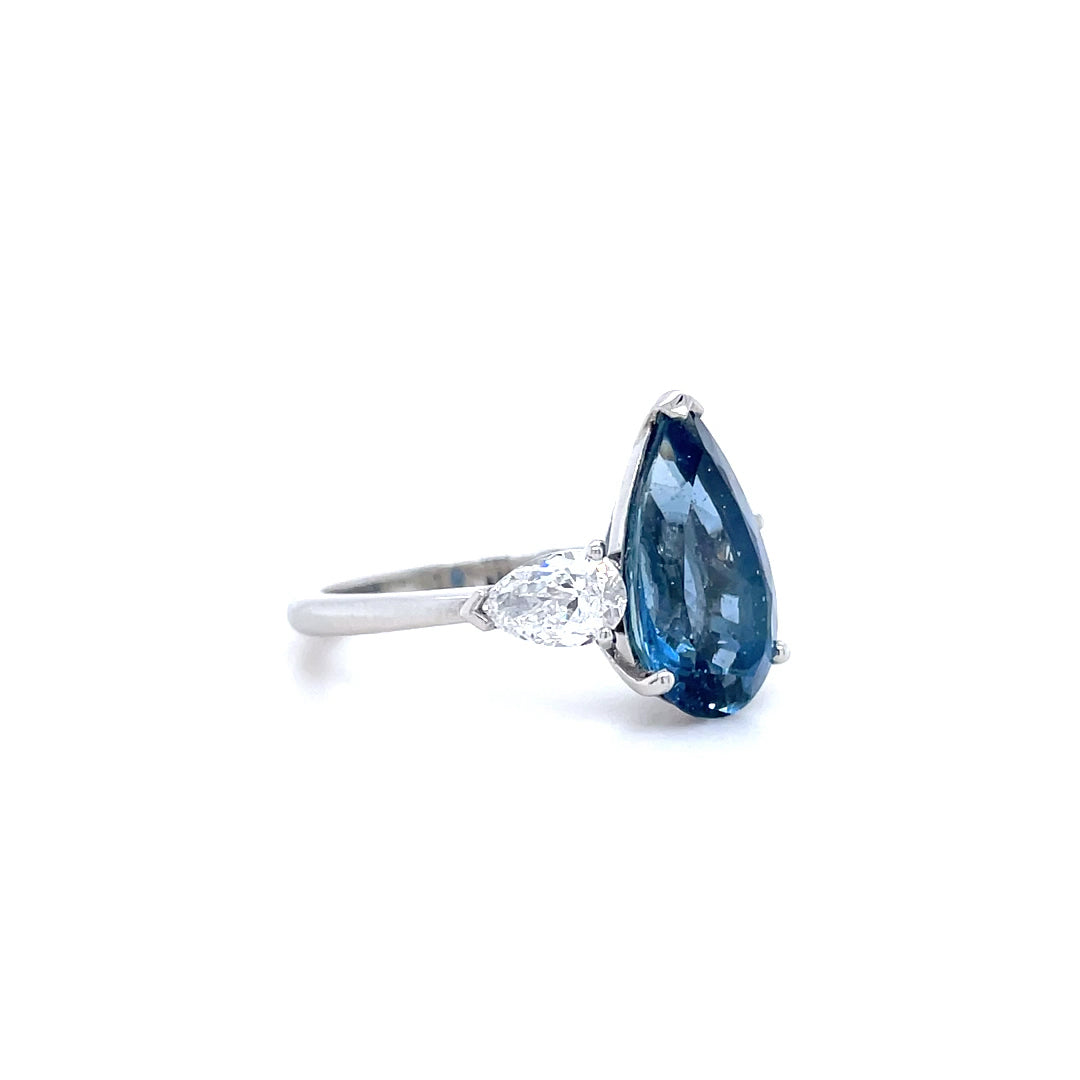3.75ct Pear Cut Aquamarine And Diamond Three Stone Dress Ring