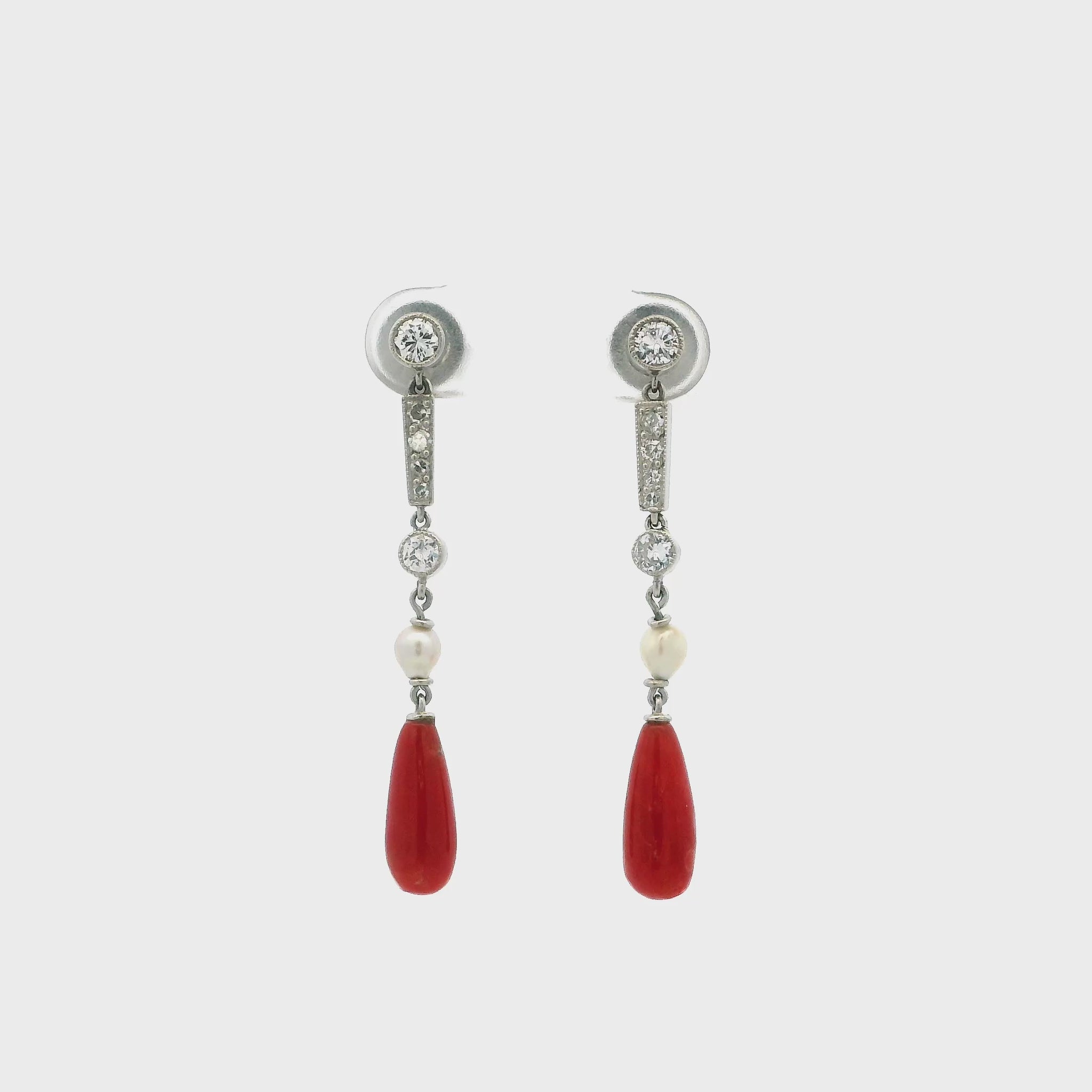 Coral, Pearl And Old Cut Diamond Drop Earrings