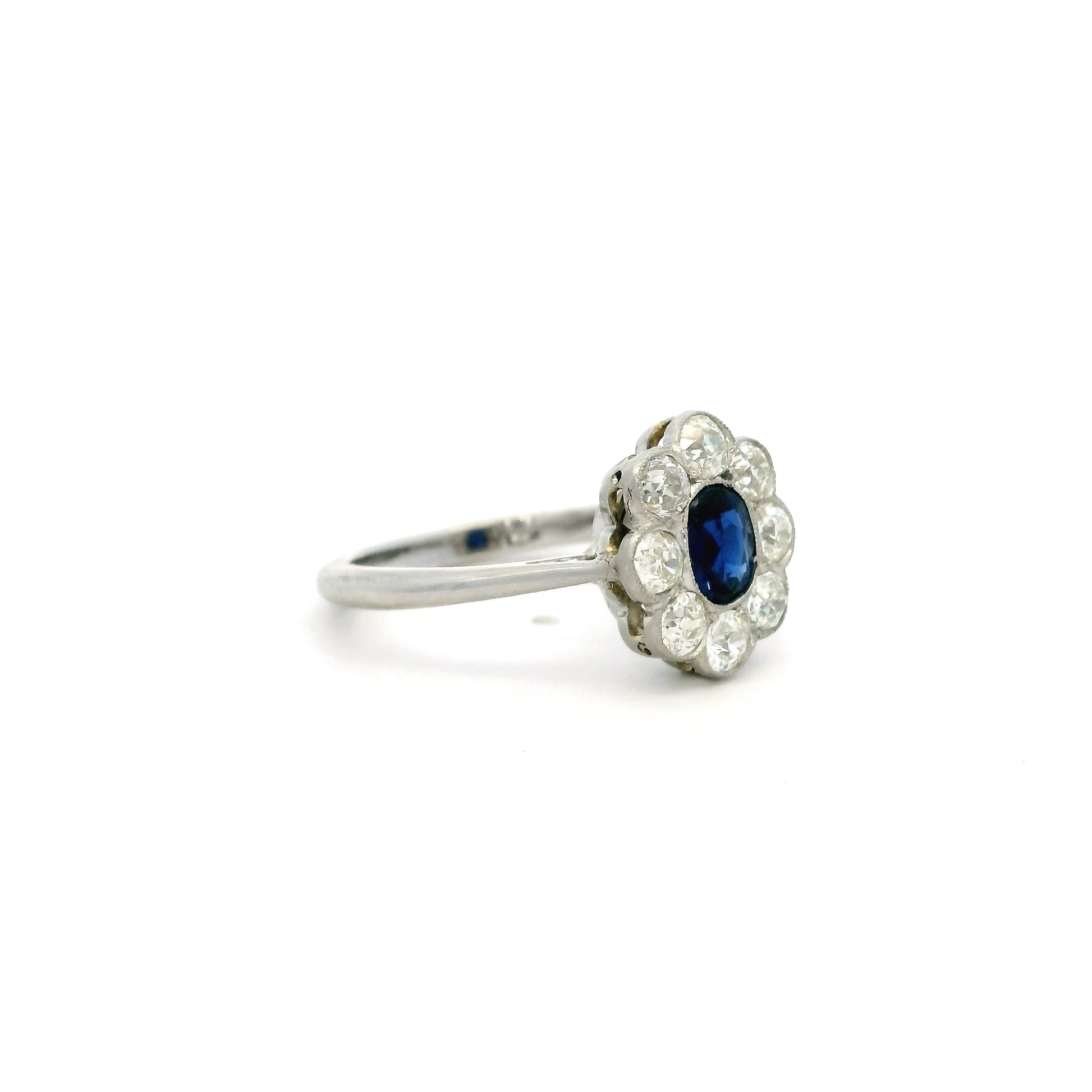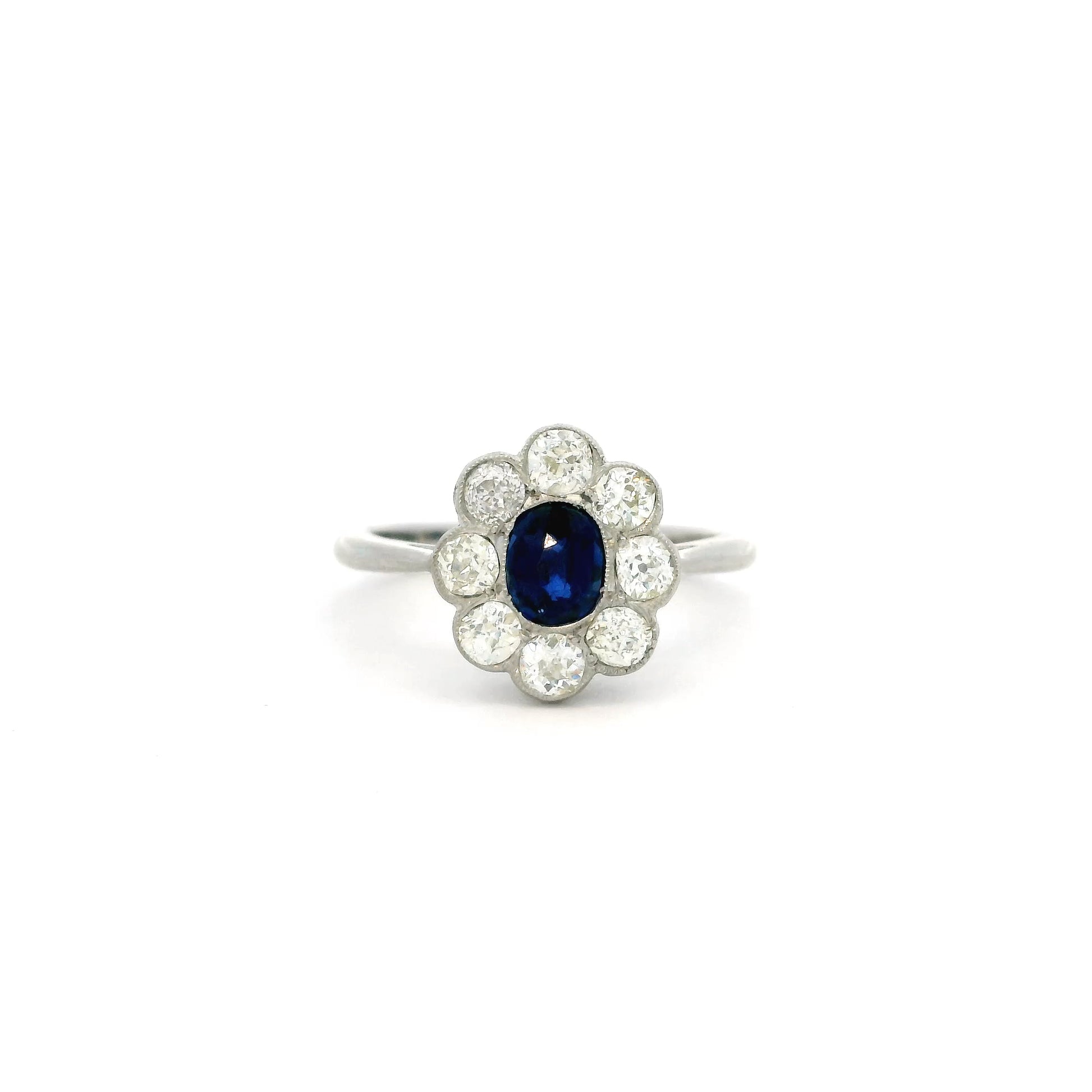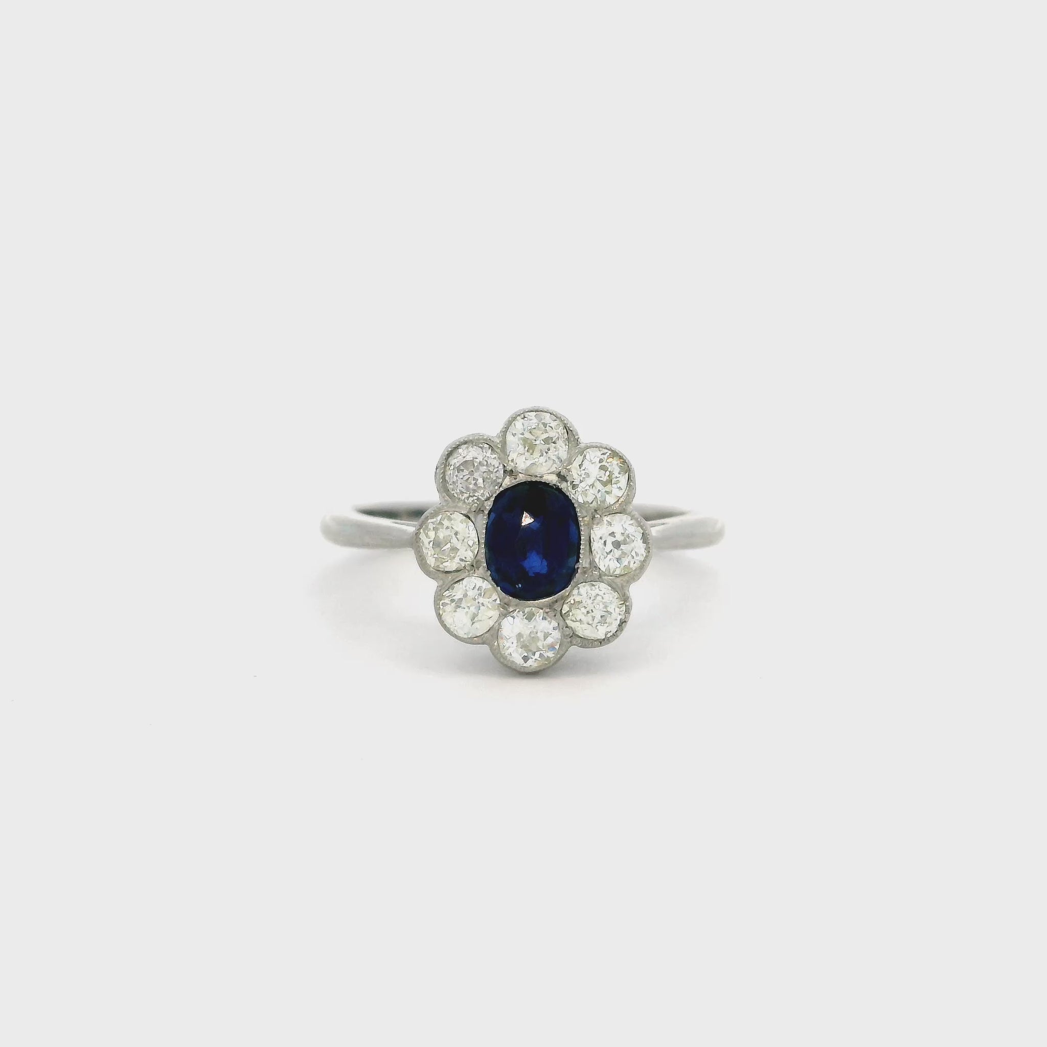 0.65ct Cushion Sapphire And Old Cut Diamond Cluster Ring