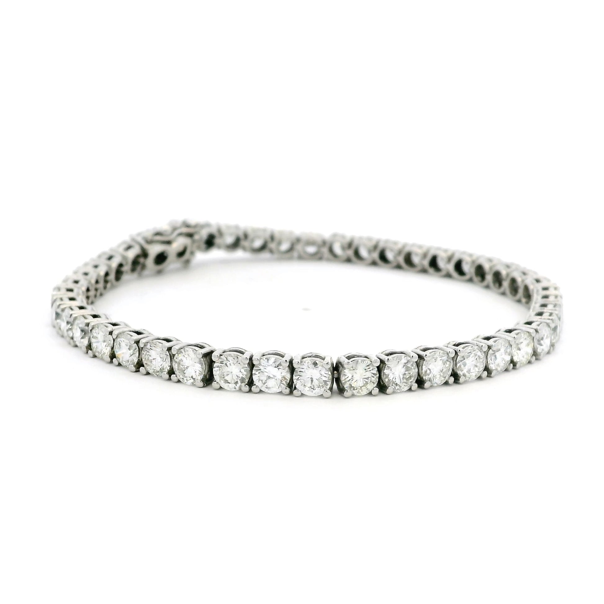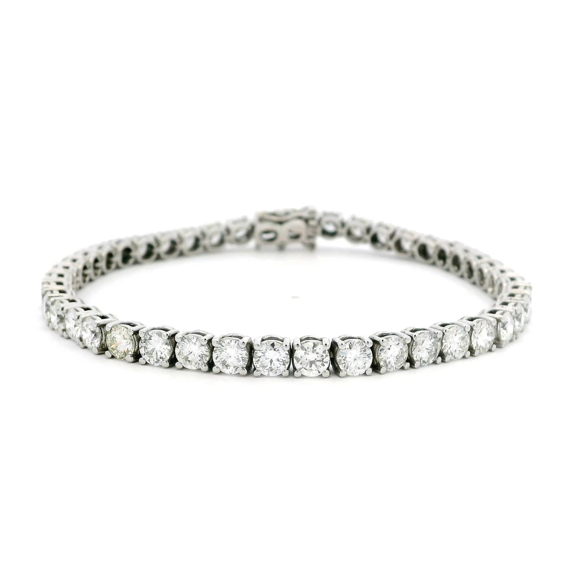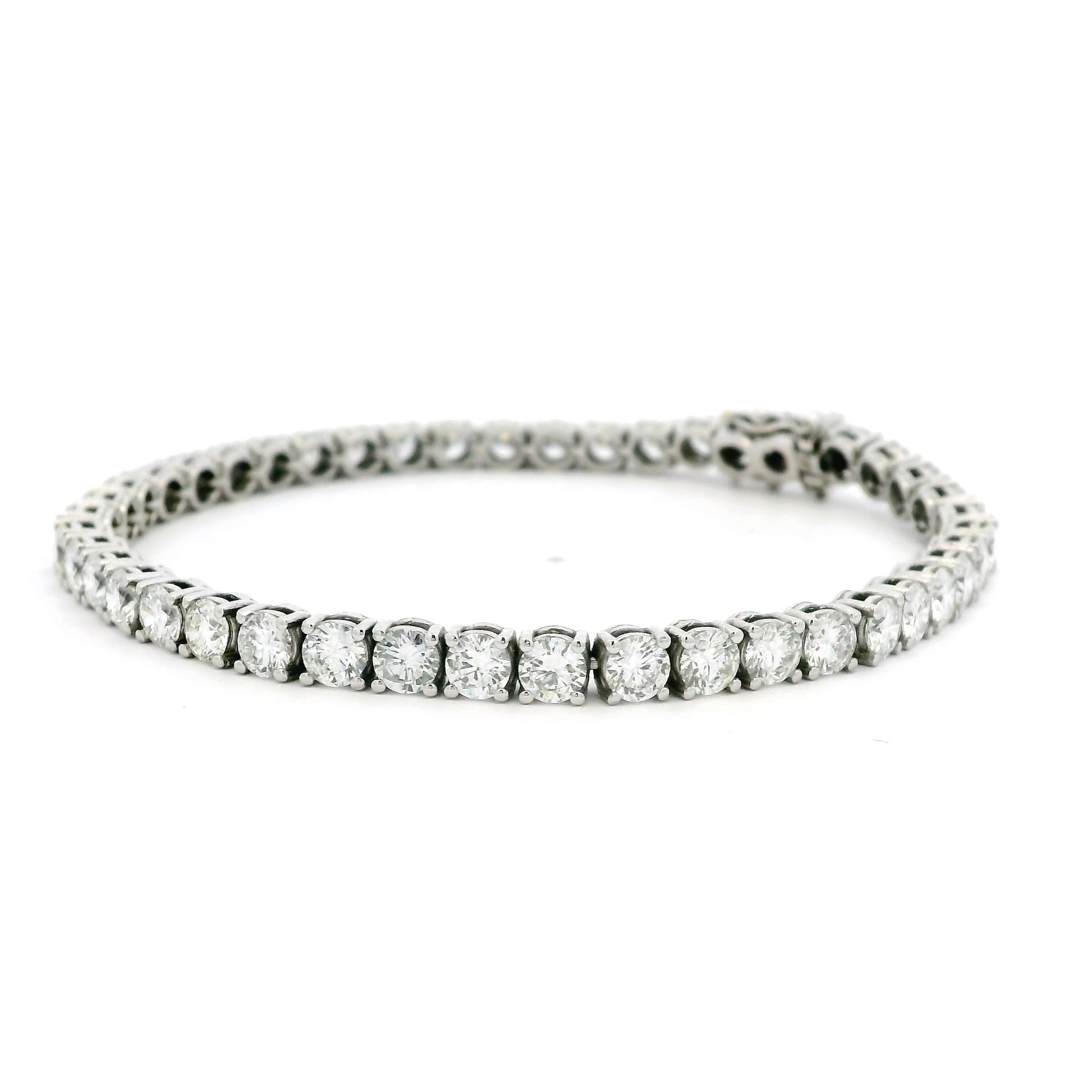 An 18ct white gold claw set round brilliant cut diamond line tennis bracelet.