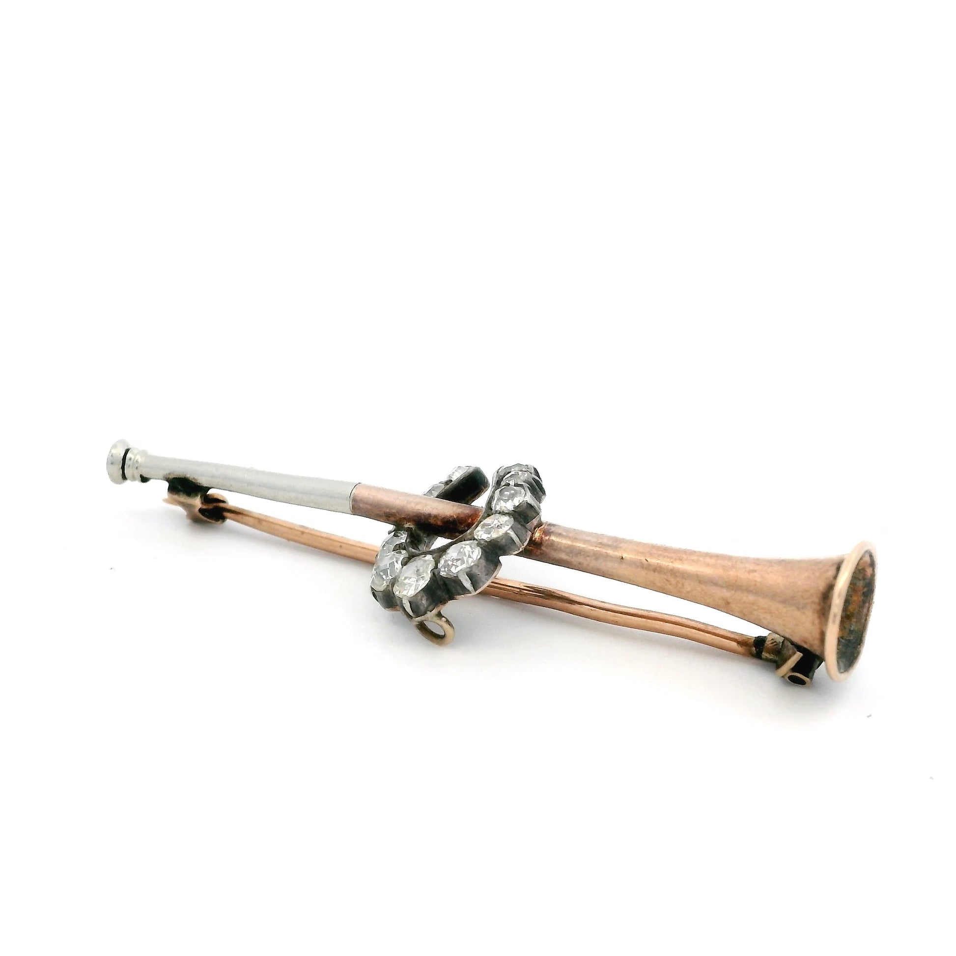 Old Cut Diamond Horseshoe And Horn Bar Brooch