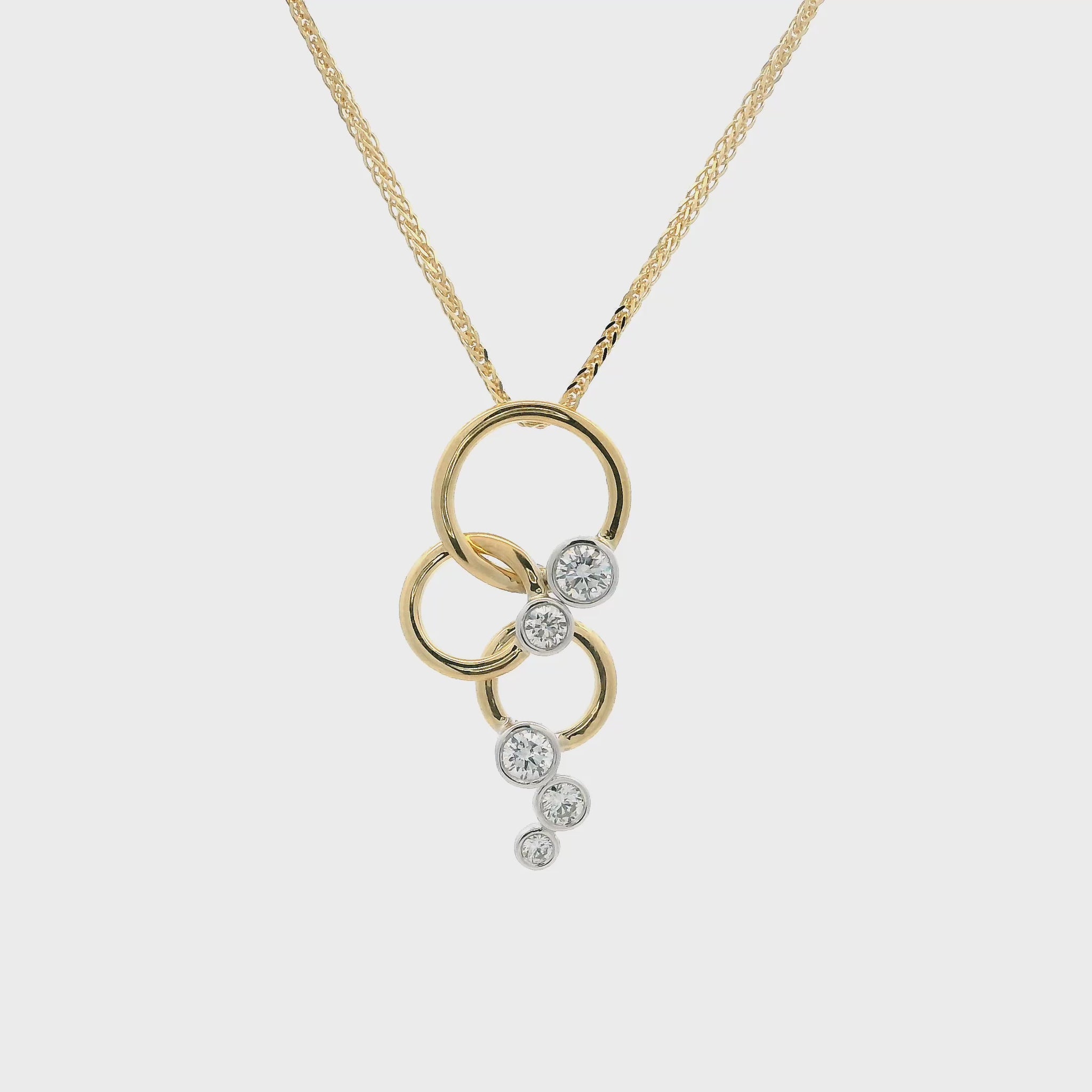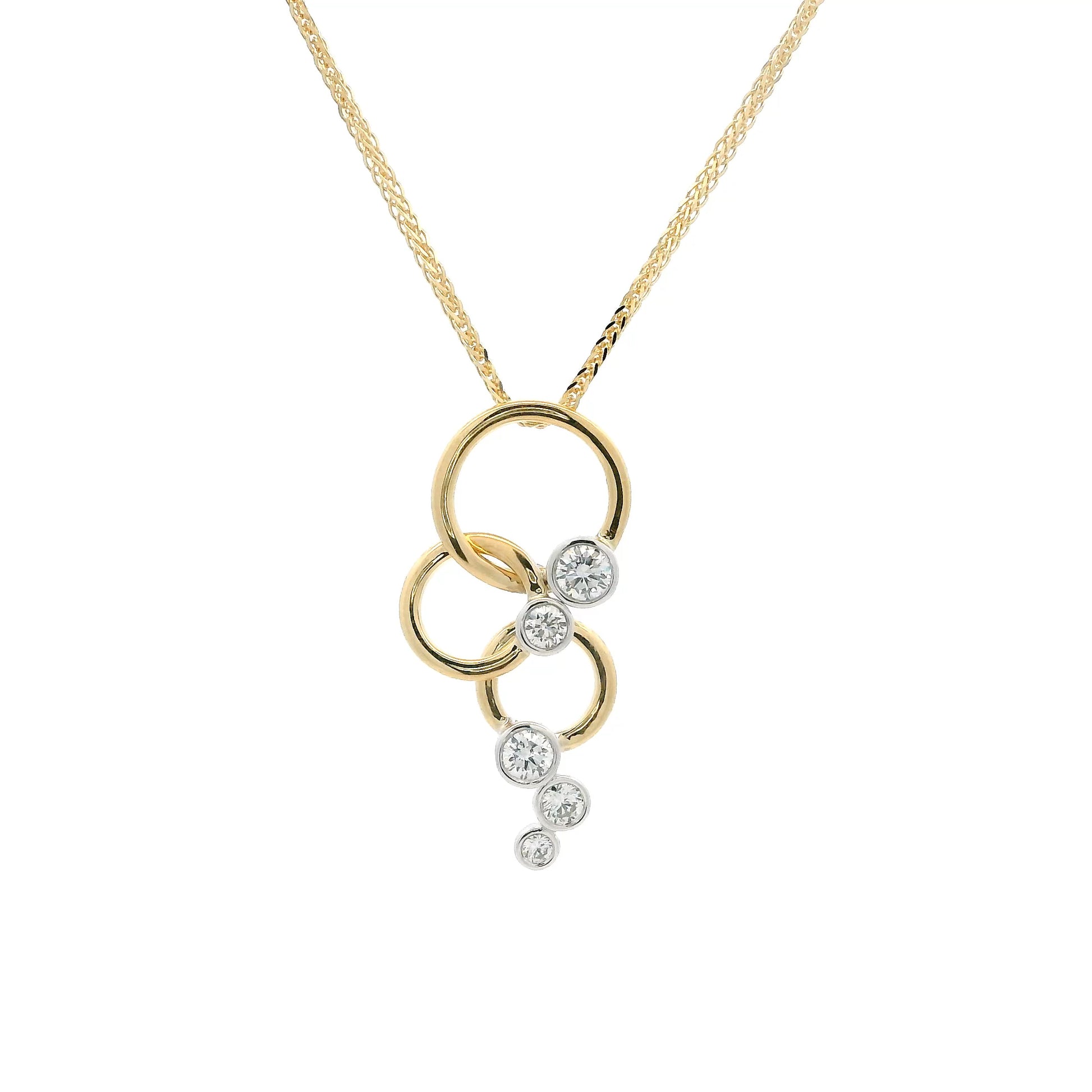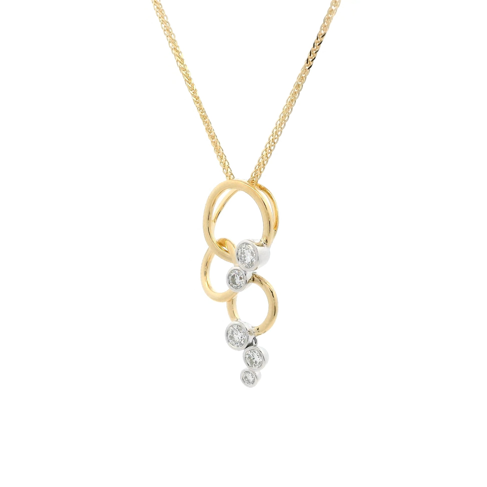 Round Diamond Bubbles And Yellow Gold Rings Drop Pendant