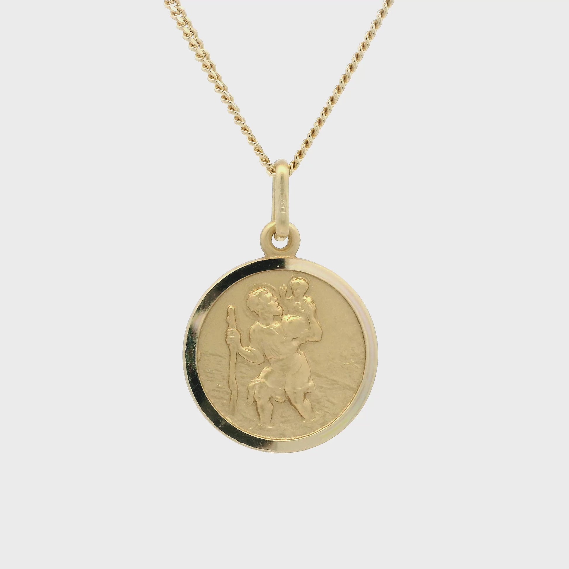 Yellow Gold Bordered Round 17mm Saint Christopher Pendant