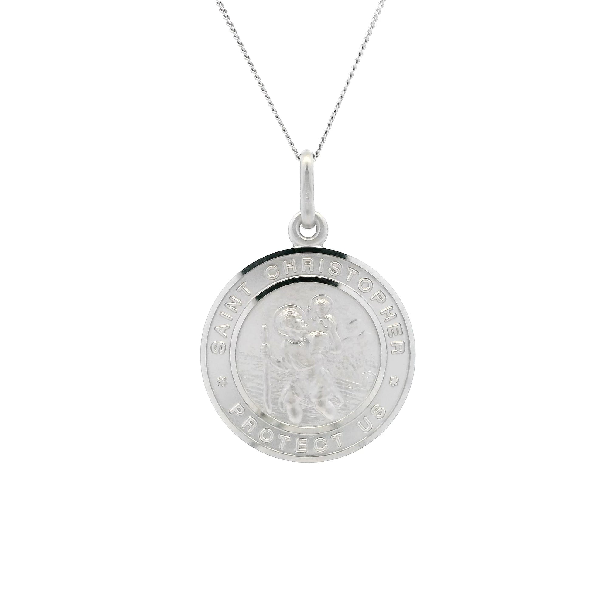 18ct Gold Bordered With Writing Round 19mm Saint Christopher Pendant