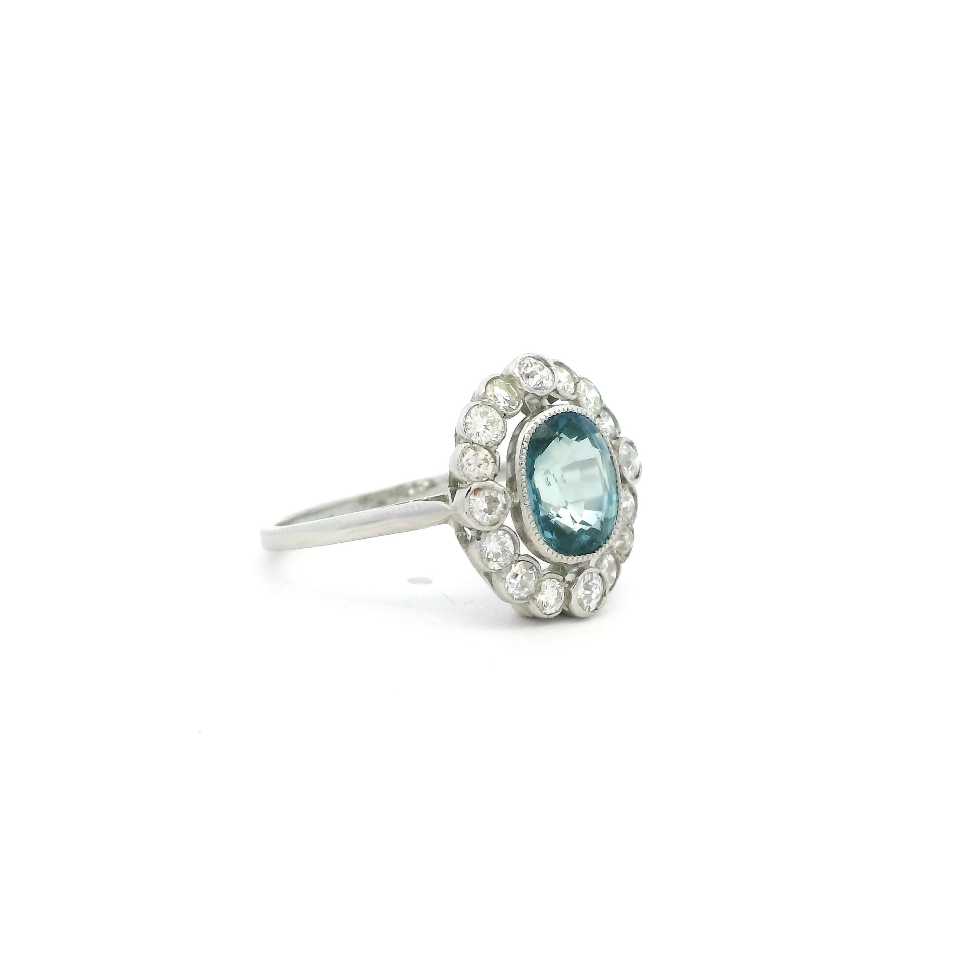 2.31ct Cushion Cut Teal Sapphire And Old Cut Diamond Cluster Ring