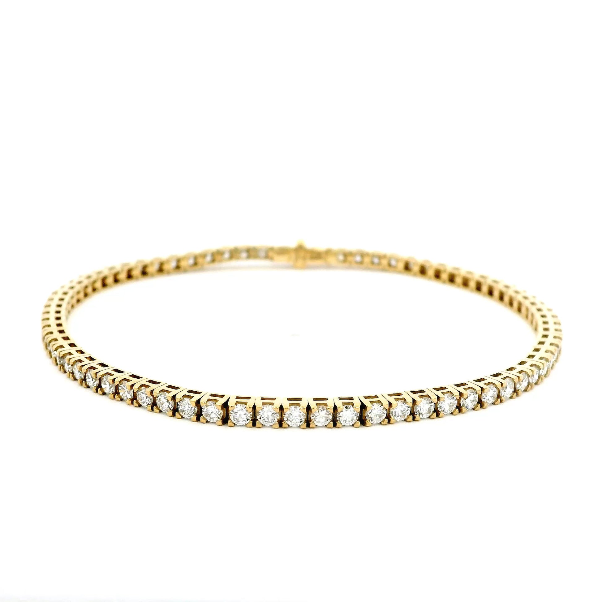 An 18ct yellow gold claw set round brilliant cut diamond line bracelet.